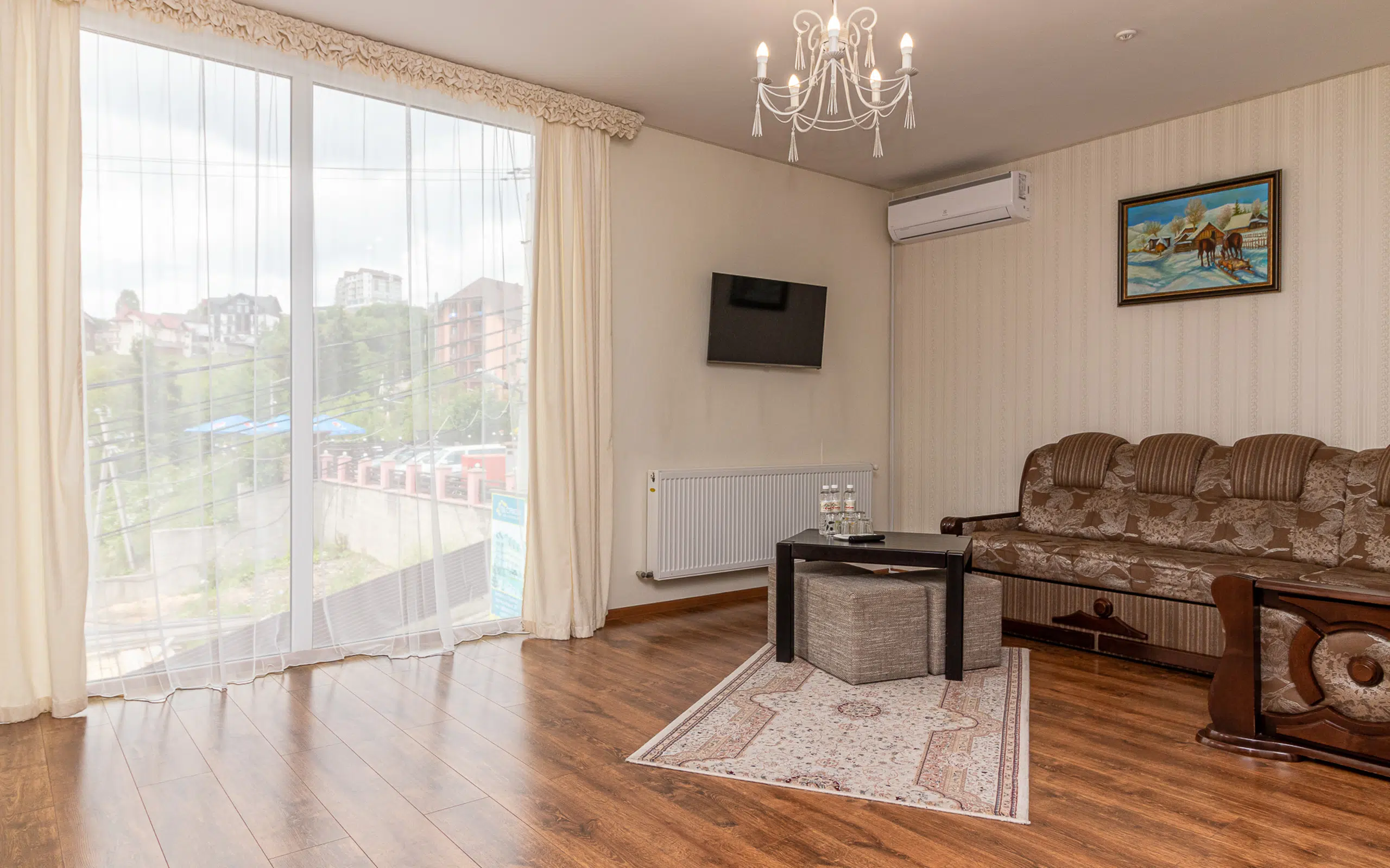 Сучасний білосніжний готель Під Стріхою з різьбленими балконами і гостро ерхими піками даху дивовижно гармонує з навколишніми Карпатськими горами, колоритними українськими пейзажами і атмосферою розваг. Вдалий мікс незайманої природи і першокласного комфорту.